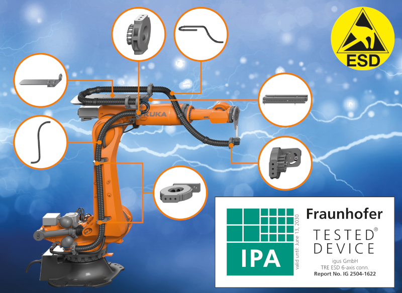 igus 完整的 triflex ESD 系統可保護電子元件免受靜電放電的影響——客戶已成功使用基礎系統超過 15 年