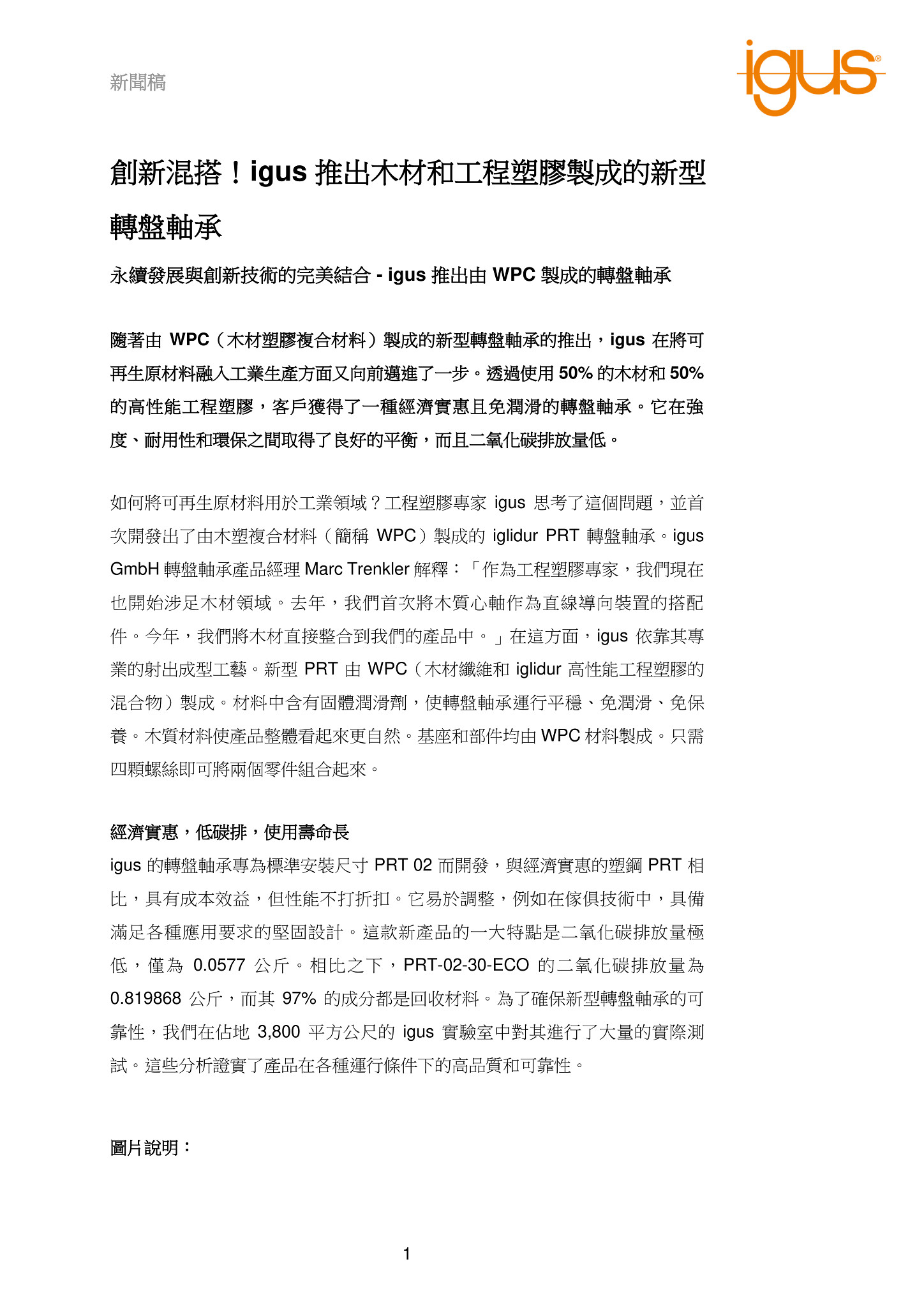 永續發展與創新技術的完美結合 – igus 推出由 WPC 製成的轉盤軸承