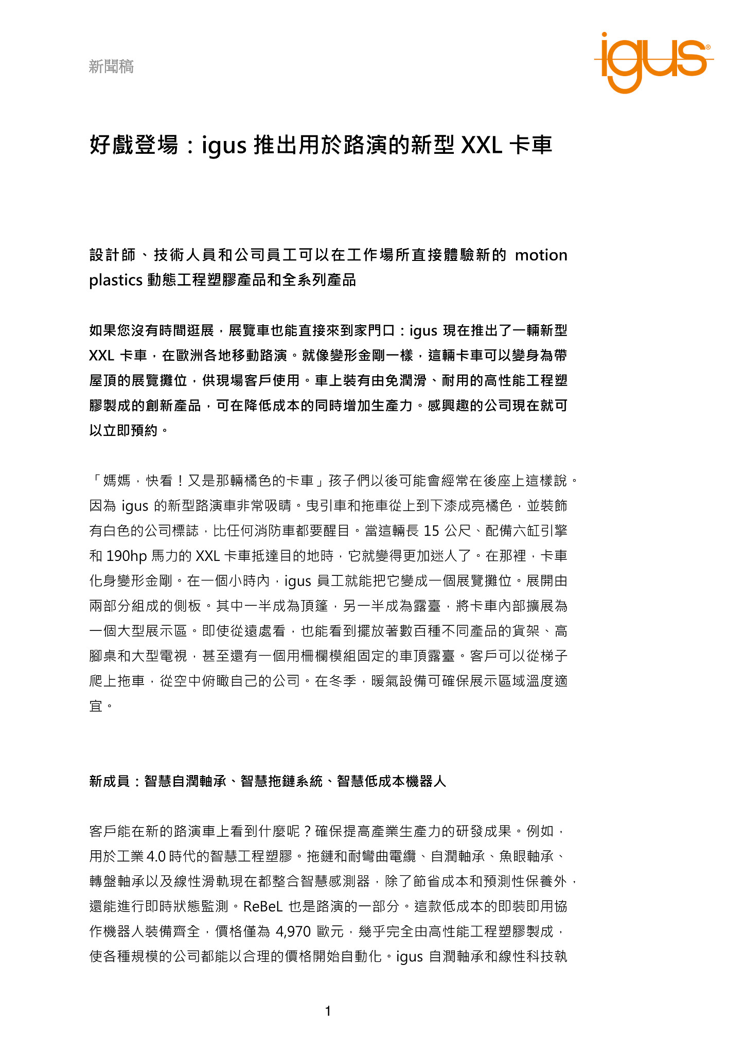 好戲登場:igus 推出用於路演的新型 XXL 卡車