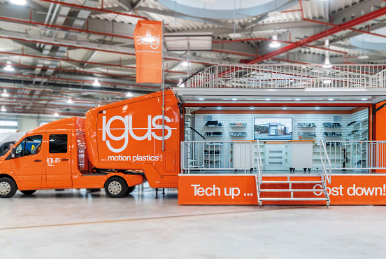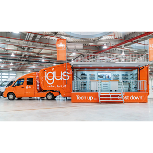 如果您沒有時間逛展,展覽車也能直接來到家門口:igus 現在推出了一輛新型 XXL 卡車,在歐洲各地移動路演。就像變形金剛一樣,這輛卡車可以變身為帶屋頂的展覽攤位,供現場客戶使用。車上裝有由免潤滑、耐用的高性能工程塑膠製成的創新產品,可在降低成本的同時增加生產力。感興趣的公司現在就可以立即預約。