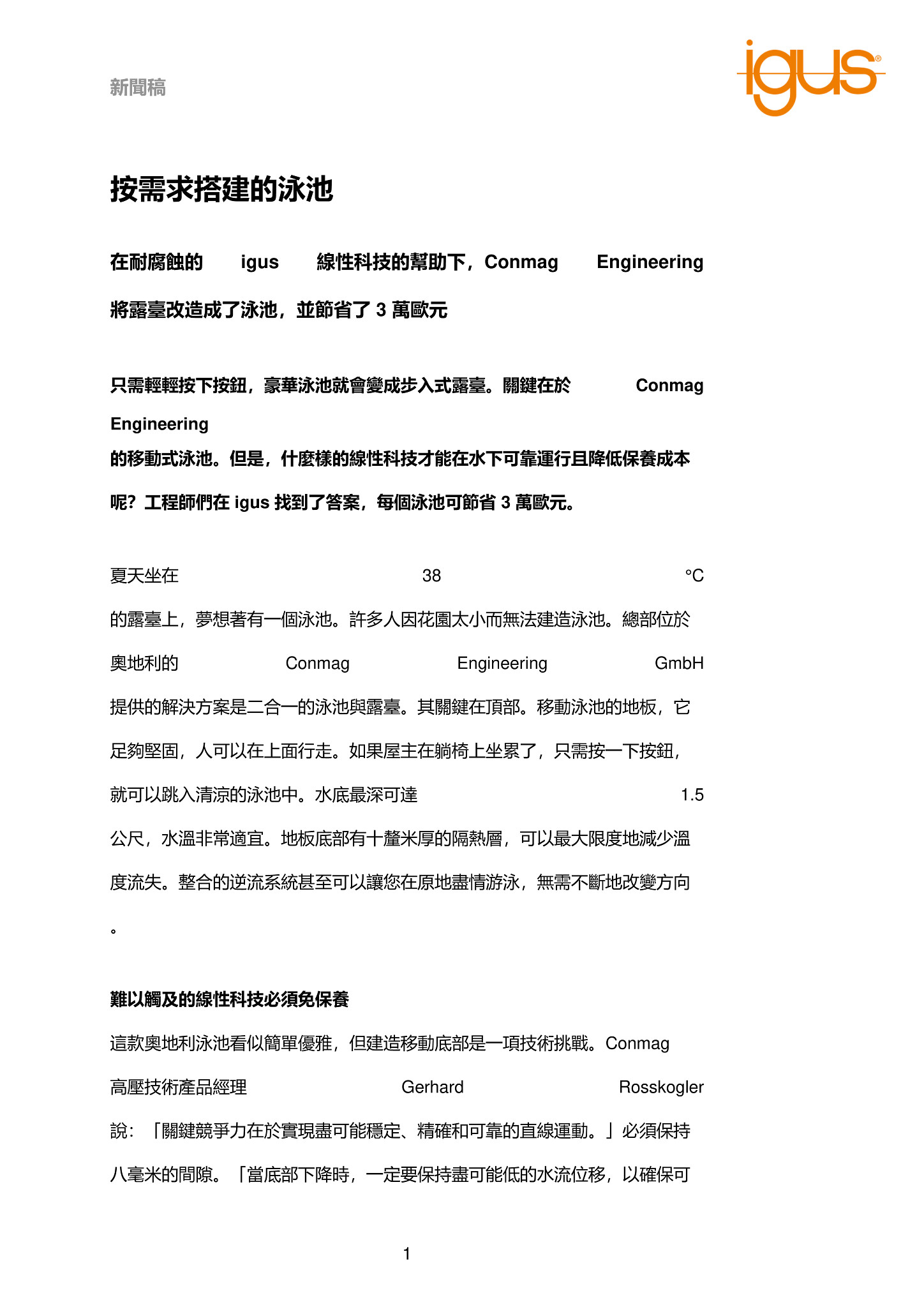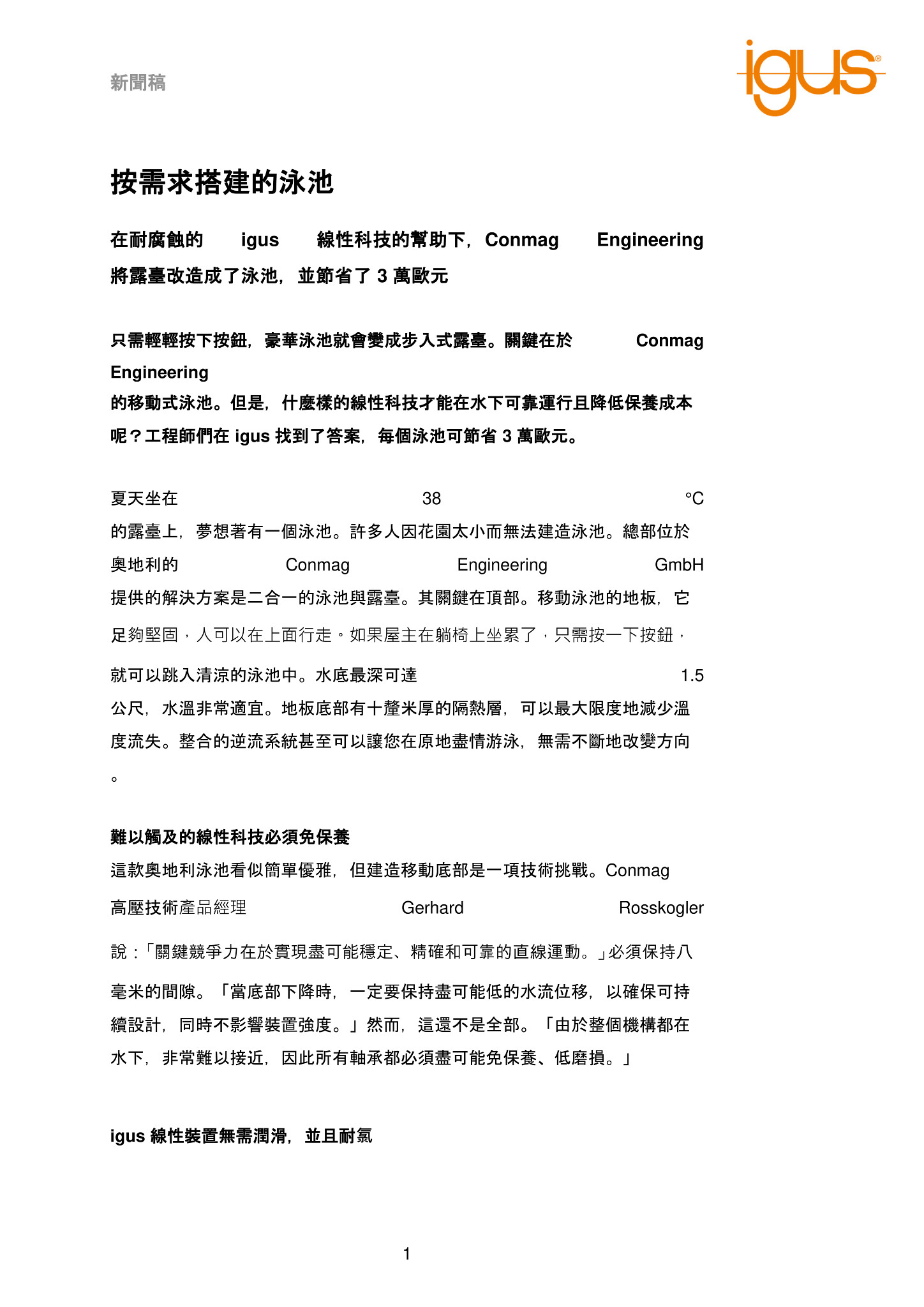 在耐腐蝕的 igus 線性科技的幫助下,Conmag Engineering 將露臺改造成了泳池,並節省了 3 萬歐元
