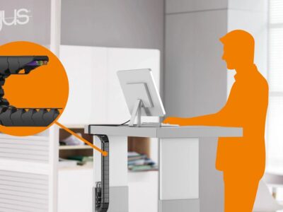 越來越多的人開始使用可升降的辦公桌,以符合人體工學的方式工作。為避免電纜纏繞和絆倒危險,整齊有序的拖鏈至關重要。igus 的新型 OfficeChain OCO.32.37.0 就是完美解決方案。由於易於操作和設計簡單,拖鏈可以毫不突兀地融入各種辦公環境,同時提供井然有序的佈線。