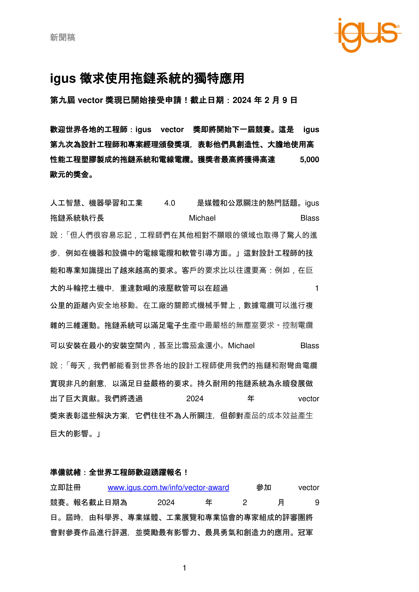 立即報名 vector 獎:www.igus.com.tw/info/vector-award